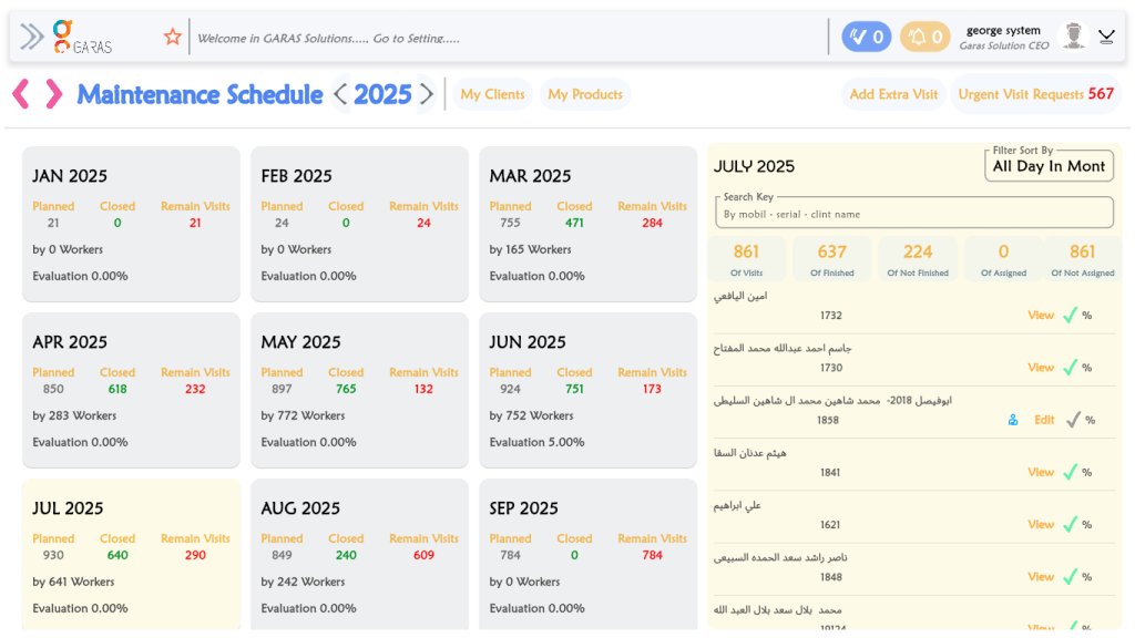 Our platform is designed to simplify every aspect of maintenance management. From scheduling tasks to tracking visits, managing clients, and generating reports — everything you need is in one powerful system.