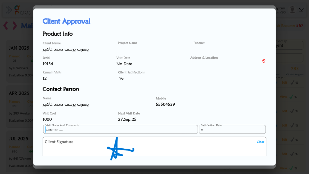 Once maintenance is complete, clients can review reports and approve them instantly through the app. This seamless process ensures clarity, trust, and faster service completion.