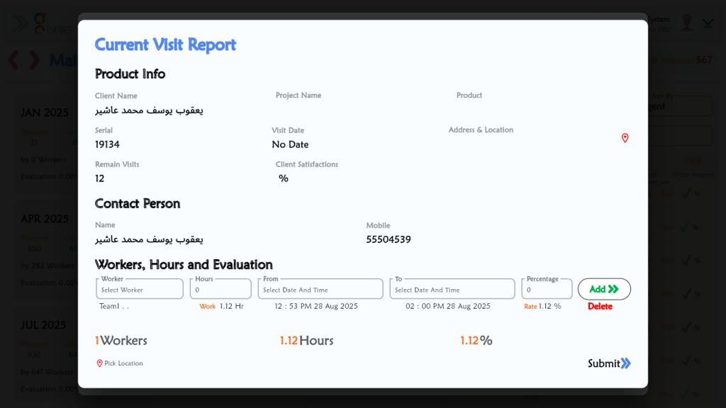 Yes. The system includes visit and report tracking tools that let you review completed tasks, monitor ongoing work, and generate accurate service reports automatically.